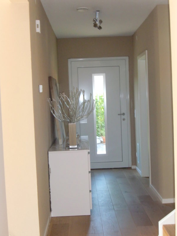 EG mit offenem Grundriss: Flur, Gäste-WC, Garderobe, Küche mit
